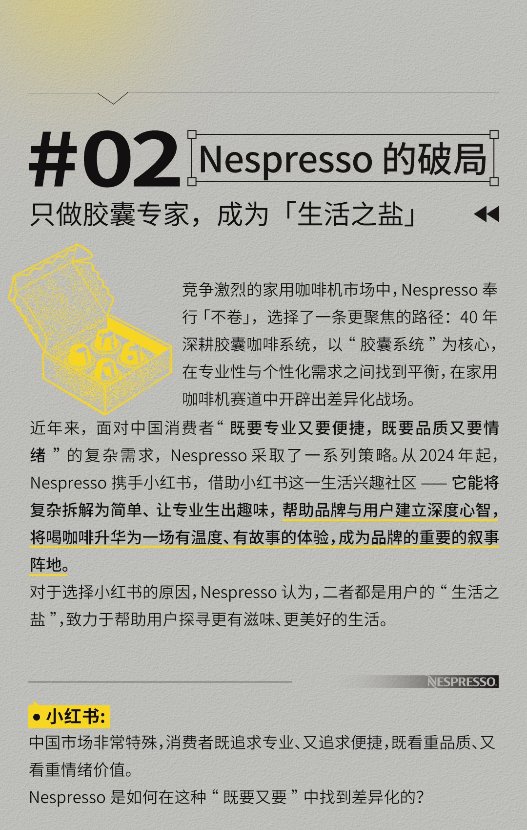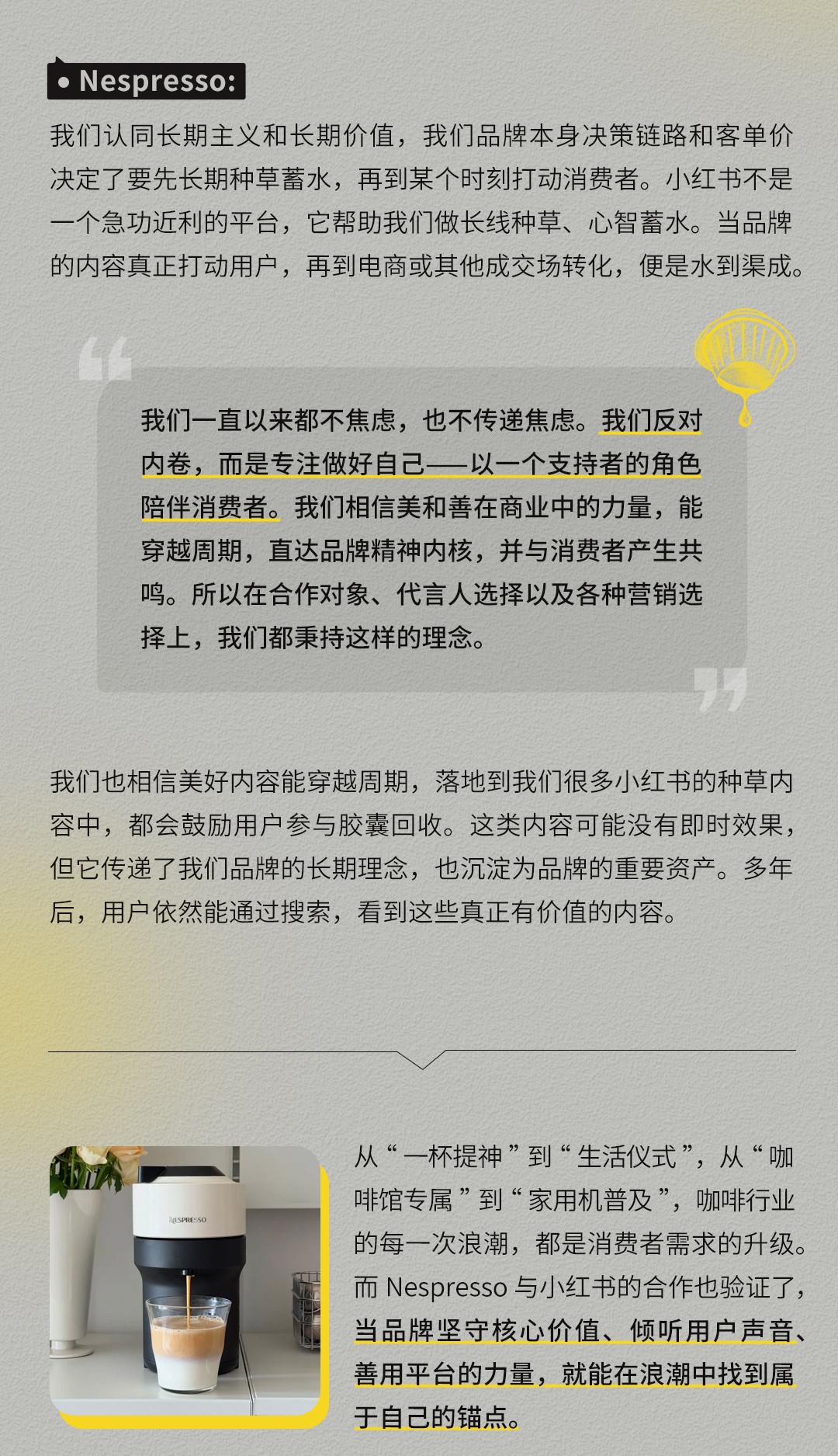 详解胶囊咖啡品牌Nespresso如何在小红书深入消费者生活,探寻咖啡行业的趋势,在家用咖啡机赛道找到差异化定位,探讨品牌在激烈内卷的消费红海中如何坚守初心