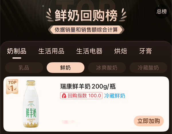 尤为亮眼的是,在朴朴超市等新零售平台,瑞康鲜羊奶一举夺得“乳品回购榜”与“鲜奶回购榜”双料冠军,稳居朴朴鲜羊奶第一。这一系列成绩,不仅是一份沉甸甸的市场捷报,更是中国乳制品消费升级浪潮中一个极具代表性的深度样本,标志着鲜羊奶品类正从“小众营养选择”加速迈向“主流品质标配”。